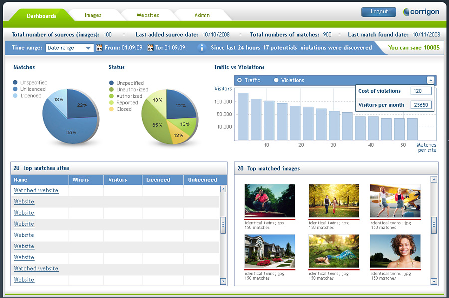 Corrigon Image identifier provides a comprehensive image monitoring solution that identifies how and where images are being used in the internet and in print.